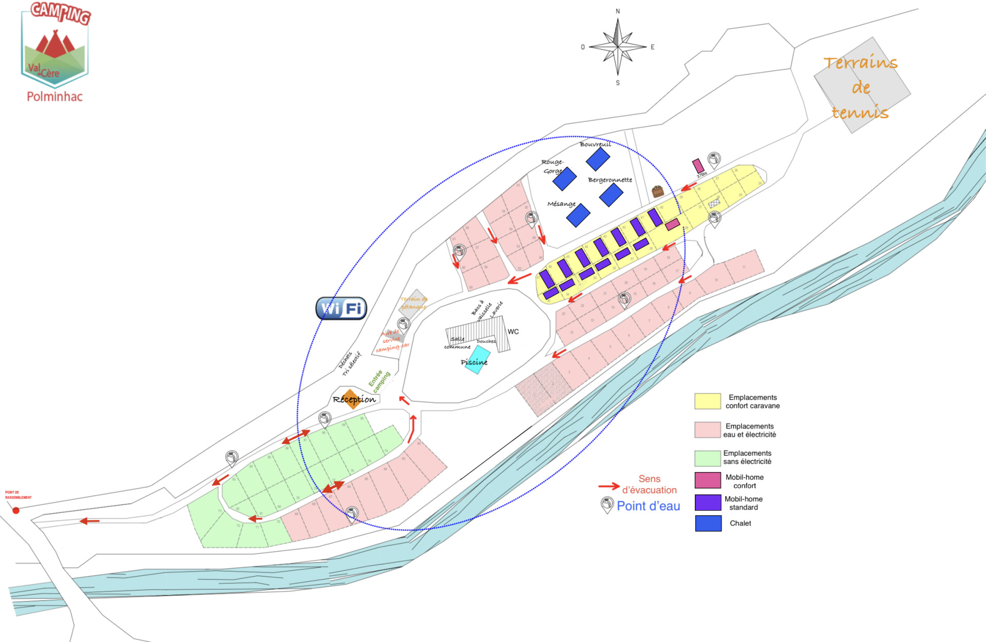 - Accès WIFI disponible dans une grande zone centrale du camping et autour de la piscine